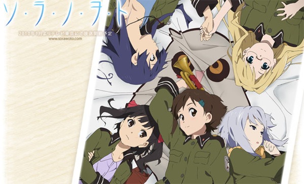 So-Ra-No-Wo-To – Описание: Долгие годы мир сотрясала война, и сейчас многие страны, в том числе республика Гельвеция, лежат в разрухе. Тем не менее, жизнь продолжается, и сирота военных лет Каната Сорами вступает в армию, чтобы осуществить свою мечту – играть на трубе. Излишне говорить, что героиня обладает абсолютным слухом, до наивности простым характером и громадной целеустремленностью. Судьба приводит ее в горный городок Сейзе, который защищает старая Часовая крепость. Вот только война кончилась, теперь гарнизон крепости состоит лишь из четырех милых девушек во главе с капитаном Фелисией Хайдеман и старшим сержантом Рио Кадзумией. Присоединившись к ним, Каната быстро поняла, что обрела новую семью, в которую входят не только новые подруги по службе, но и почти все местные жители.
